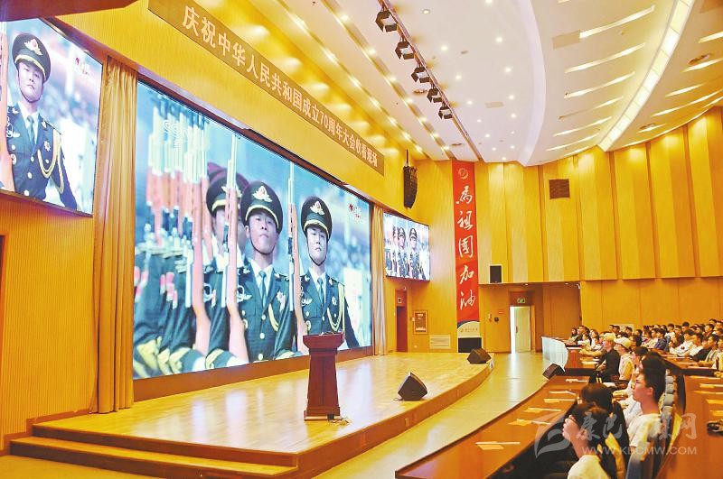 舉行升旗儀式、“快閃”合唱后,成都理工大學(xué)幾千名學(xué)子在食堂、報(bào)告廳集體觀看了直播,“太帥了!”“祖國太強(qiáng)大了!”軍人的颯爽英姿、先進(jìn)的軍事武器引來同學(xué)們陣陣贊嘆。