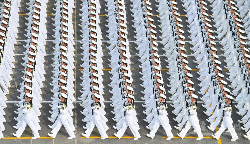 行進中的海軍方隊。新華社記者岳月偉攝
