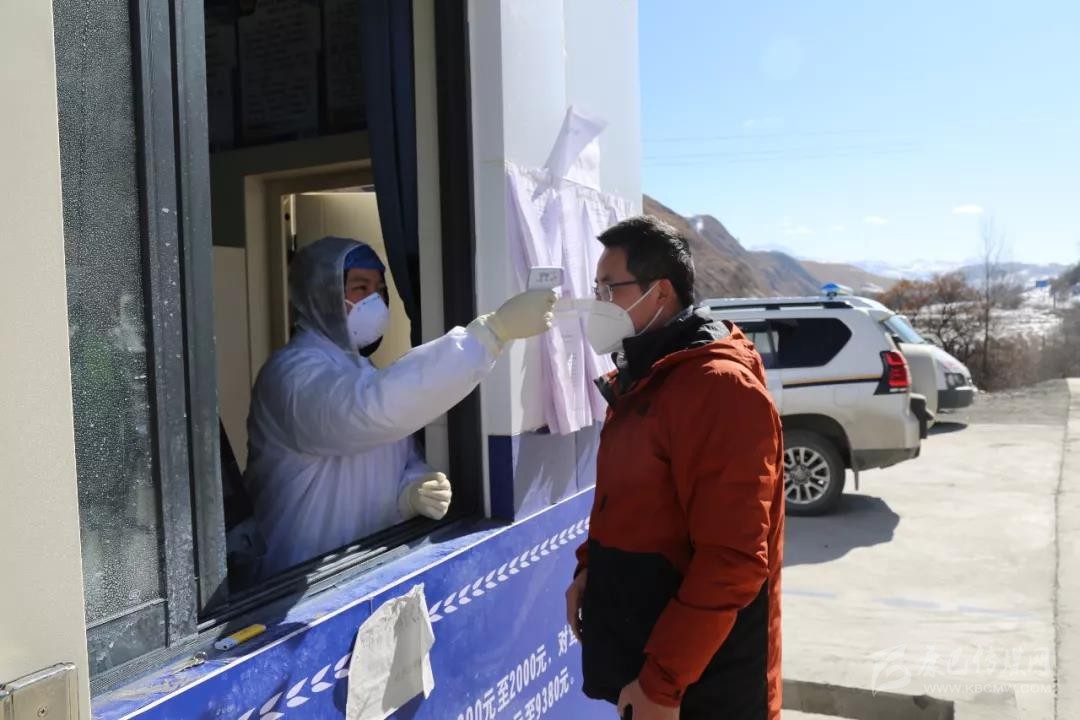 隨后,測體溫,無異常,再登記,詳細了解姓名、身份證號、電話號碼、工作單位、此行去向。負責登記的工作人員羅慶東告訴記者,八美卡點每天過往車輛約300輛、車乘人員900余人?!懊總€車都要嚴格測體溫,作登記,要嚴防有病源輸入,我們一定要把住進道孚‘第一關’。”