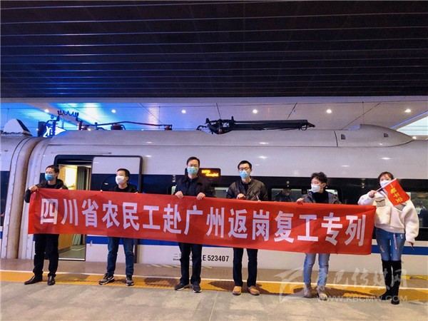2月20日上午11:30,滿載著917名川籍農(nóng)民工的D4755次返崗專列,從成都東出發(fā)一路駛往廣州南。這是今年春節(jié)后我省首趟開往廣東省的農(nóng)民工返崗專列,也是我省與廣東在新冠病毒疫情期間勞務(wù)協(xié)作共識達成后,開行的首趟農(nóng)民工返崗專列。此次專列開行,極大滿足了疫情期間我省農(nóng)民工外出務(wù)工需求,同時也為廣東省企業(yè)復(fù)工復(fù)產(chǎn)提供了勞動力支持。此趟專列票務(wù)費用由廣東省人社廳承擔(dān),農(nóng)民工免費乘坐。
