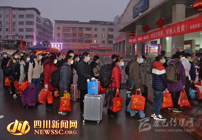 2月21日早上7時58分,乘載著1058名廣安籍農(nóng)民工的K4201返崗專列,準(zhǔn)時出發(fā)駛往廣州站。這是今年春節(jié)后四川省開往各地的農(nóng)民工返崗專列中人數(shù)最多的一趟。從家門口到廠房,都有專車接送,廣安籍農(nóng)民工享受的是“一條龍”無縫對接服務(wù)。
