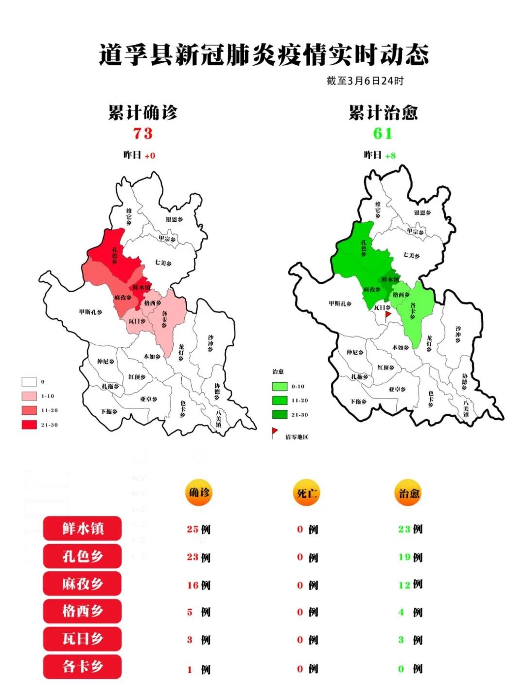 疫情速報(bào)丨道孚縣連續(xù)8天無(wú)新增,其余縣(市)連續(xù)32天無(wú)新增,累計(jì)治愈出院66人