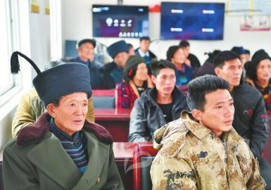 10月28日,把家里的幾頭豬安頓好后,涼山州美姑縣洛俄依甘鄉(xiāng)阿居曲村村民曲比曲千早早地趕到村委會,收看當天村上“云端夜校”的第一堂遠程授課?!艾F(xiàn)在村里家家戶戶都養(yǎng)豬,收入好不好就看各家豬兒喂得肥不肥,今天是成都的專家講養(yǎng)殖,我眼睛又不太好,想坐前面點?!?/p>