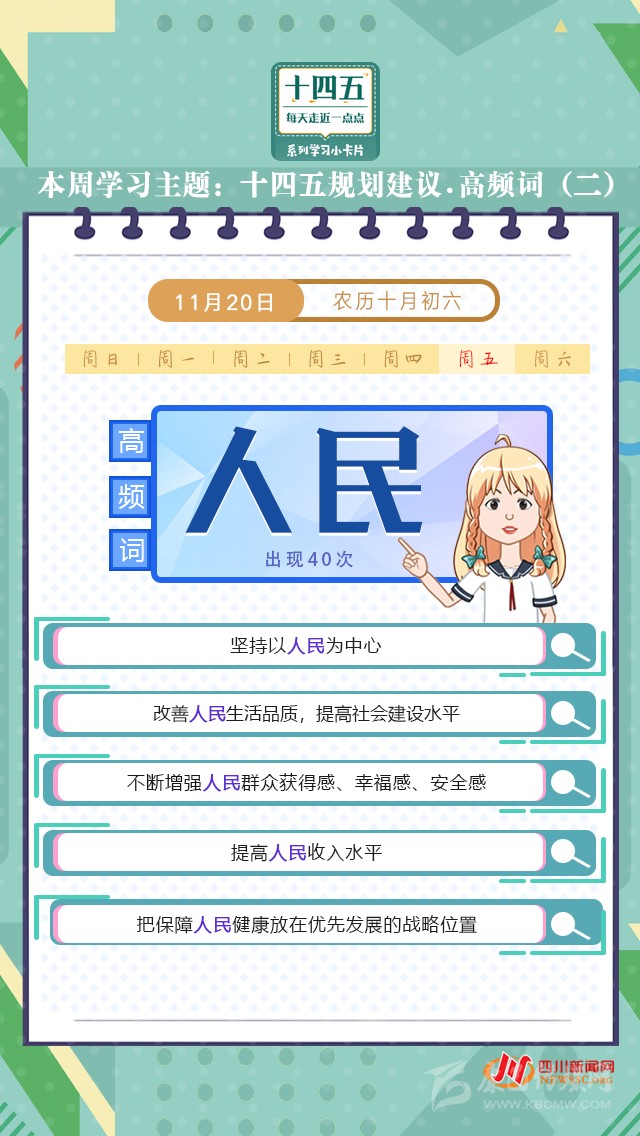 本周學(xué)習(xí)主題“十四五規(guī)劃建議·高頻詞”,10個(gè)高頻詞帶你學(xué)習(xí)“十四五”規(guī)劃建議。今天打卡學(xué)習(xí)“十四五”規(guī)劃建議中的高頻詞:人民。