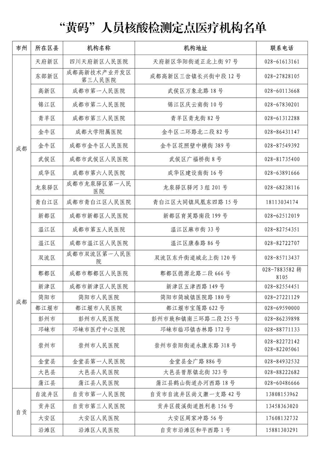 1. “黃碼”人員核酸檢測定點(diǎn)醫(yī)療機(jī)構(gòu)名單