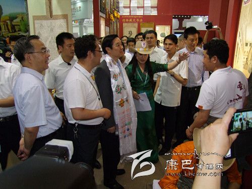 視察中,劉奇葆興致勃勃地觀看了我州文化形象展示大屏幕和非物質(zhì)文化遺產(chǎn)展示、土特產(chǎn)品及民間工藝品。他來(lái)到藏文書(shū)法、藏族噶瑪嘎孜畫(huà)派、藏族藥泥面具制作技藝等非物質(zhì)文化遺產(chǎn)項(xiàng)目和土特產(chǎn)品展品前,仔細(xì)詢問(wèn)這些藝術(shù)品的生產(chǎn)工藝、制作流程等情況后,對(duì)我州深厚的文化底蘊(yùn)和豐富的旅游資源連連稱贊,殷切希望甘孜州傳承好歷史文化,發(fā)揮好民間藝術(shù)非遺項(xiàng)目,走文化