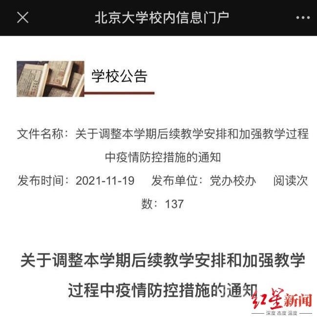如北京大學(xué)日前發(fā)布通知,學(xué)生自2022年1月7日起放寒假;中國(guó)人民大學(xué)明確自2022年1月4日至9日期末考試,自2022年1月10日起,學(xué)生放寒假;北京物資學(xué)院稱,學(xué)生寒假自2022年1月9日開(kāi)始。紅星新聞?dòng)浾咦⒁獾剑鶕?jù)校歷顯示,三所高校原計(jì)劃自2022年1月17日放寒假,放假時(shí)間均比原計(jì)劃提前一周左右。