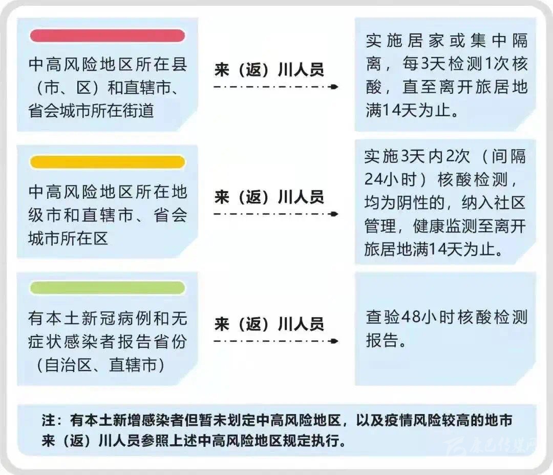 倡導(dǎo)公眾從外地來(返)川后,第一時(shí)間進(jìn)行一次核酸檢測。保持簡約健康的生活方式,不聚集、少串門。
