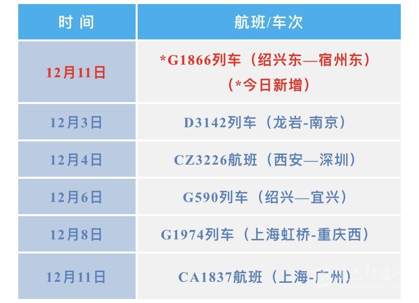 搭乘過以下交通工具的來(返)川人員,第一時(shí)間主動(dòng)向社區(qū)或居(村)委會(huì)、單位或入住酒店報(bào)備旅居史,配合做好相關(guān)防控工作。