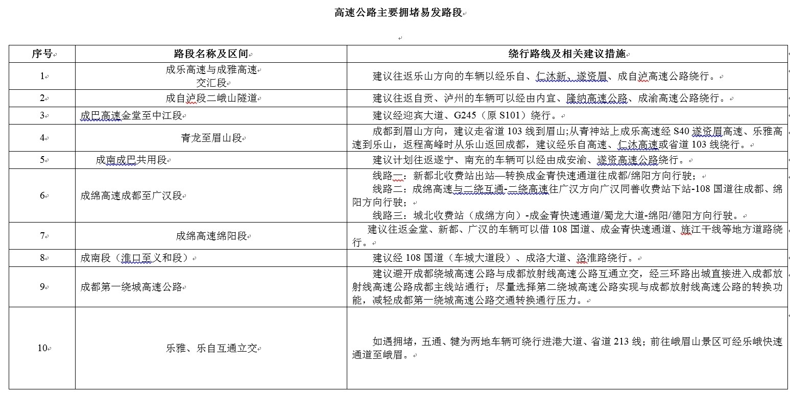 據(jù)氣象部門信息,元旦期間以多云或晴天為主,基本無惡劣天氣,適宜外出。結(jié)合我省疫情防控情況和小長假出行特點,預(yù)計元旦假期,群眾出行以省內(nèi)探親、短途出游為主,多集中在成都及其周邊地區(qū),部分通往冬季熱門景區(qū)的路段流量將較大增長。