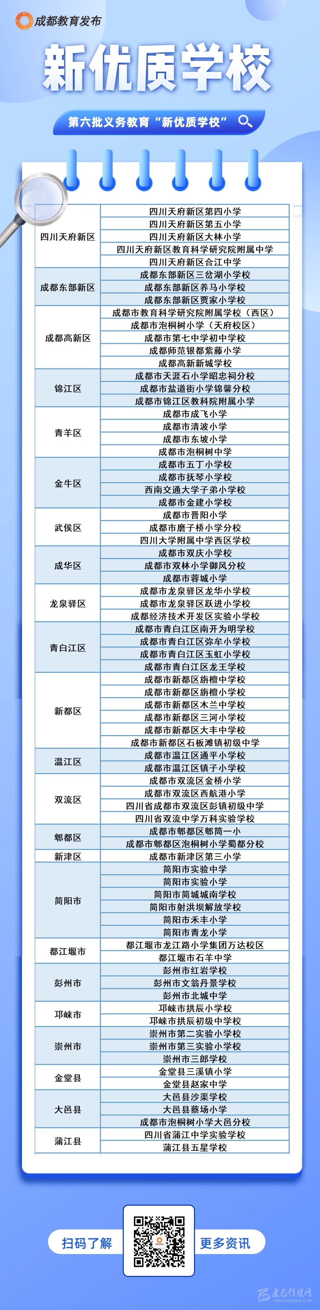 記者從成都市教育局獲悉,1月13日,成都市教育局公布全市第六批義務(wù)教育“新優(yōu)質(zhì)學?!泵麊?,成都七中初中學校等75所學校被認定為全市義務(wù)教育“新優(yōu)質(zhì)學?!保麊胃胶螅?/p>