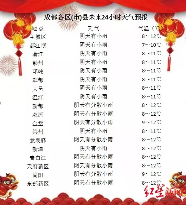 成都方面,預計未來七天,全市以陰冷天氣為主,氣溫逐步降低,且雨日較多。高海拔山區(qū)有雨夾雪或小雪,日平均氣溫將從當前的10℃左右下降至4℃左右;最高氣溫降幅將達10℃左右。