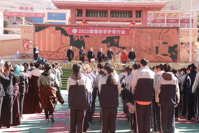 本網(wǎng)訊 浙川山海情,塘塘一家親。5月26日,“2023塘塘助學(xué)護(hù)學(xué)行動”捐贈儀式在理塘縣第二中學(xué)運動場(杭州市錢塘區(qū)援建)舉行。