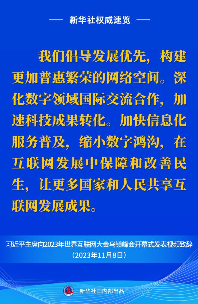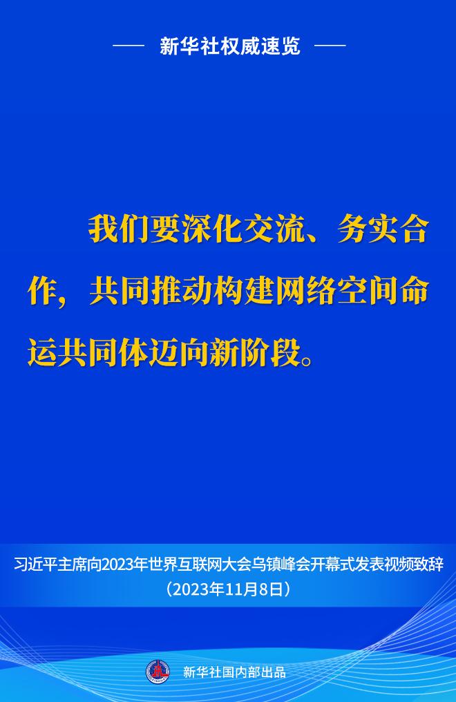 11月8日上午,國家主席習(xí)近平向2023年世界互聯(lián)網(wǎng)大會烏鎮(zhèn)峰會開幕式發(fā)表視頻致辭。一起來看金句。