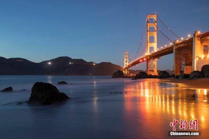 當(dāng)?shù)貢r(shí)間10月29日,美國(guó)舊金山金門(mén)大橋在海浪和夜色的襯托下美如一幅畫(huà)。中新社記者 劉關(guān)關(guān) 攝