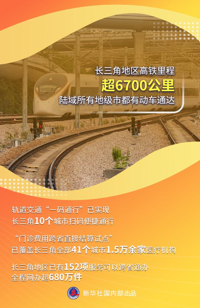 民生服務(wù)“一卡通”:軌道交通“一碼通行”已實(shí)現(xiàn)長(zhǎng)三角10個(gè)城市掃碼便捷通行;“門診費(fèi)用跨省直接結(jié)算試點(diǎn)”已覆蓋長(zhǎng)三角全部41個(gè)城市1.5萬余家醫(yī)療機(jī)構(gòu)。
