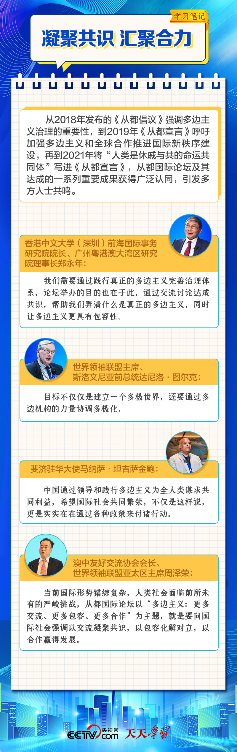 天天學(xué)習(xí)12月4日,習(xí)近平主席在致“2023從都國際論壇”的賀信中強(qiáng)調(diào),面對(duì)前所未有的世界之變、時(shí)代之變和歷史之變,人類社會(huì)必須團(tuán)結(jié)起來,堅(jiān)持互學(xué)互鑒、開放包容、合作共贏,弘揚(yáng)全人類共同價(jià)值,共同建設(shè)更加美好的世界。