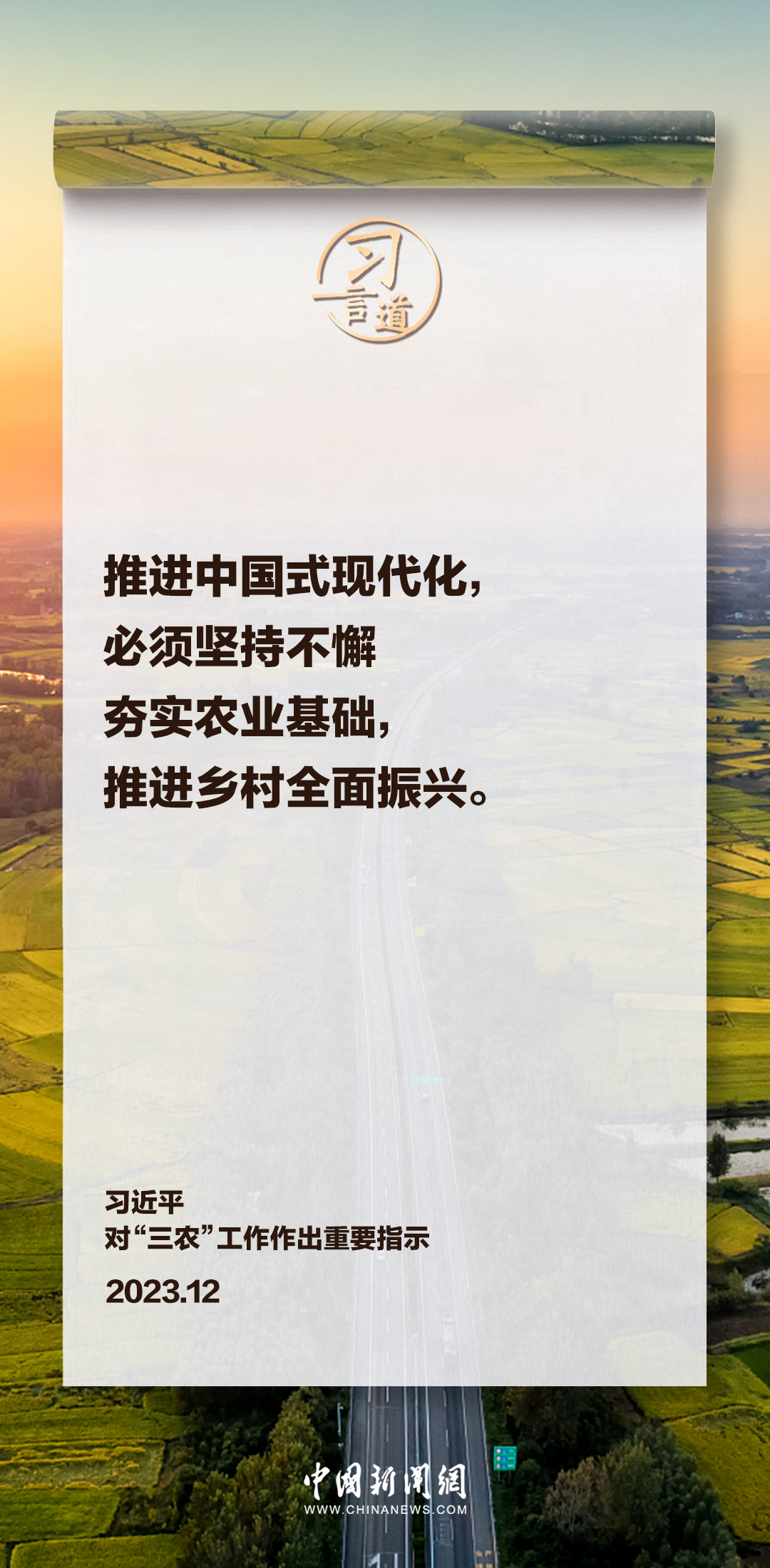 “農(nóng)業(yè)強國是社會主義現(xiàn)代化強國的根基,推進農(nóng)業(yè)現(xiàn)代化是實現(xiàn)高質(zhì)量發(fā)展的必然要求”;