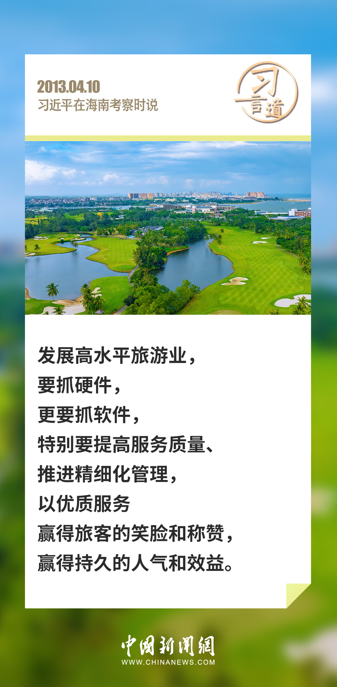 旅游是提高人民生活水平的重要產(chǎn)業(yè)。習(xí)近平總書記高度重視旅游業(yè)的發(fā)展,強(qiáng)調(diào)要不斷加強(qiáng)各類軟硬件建設(shè),以優(yōu)質(zhì)服務(wù)贏得旅客的笑臉和稱贊,贏得持久的人氣和效益。
