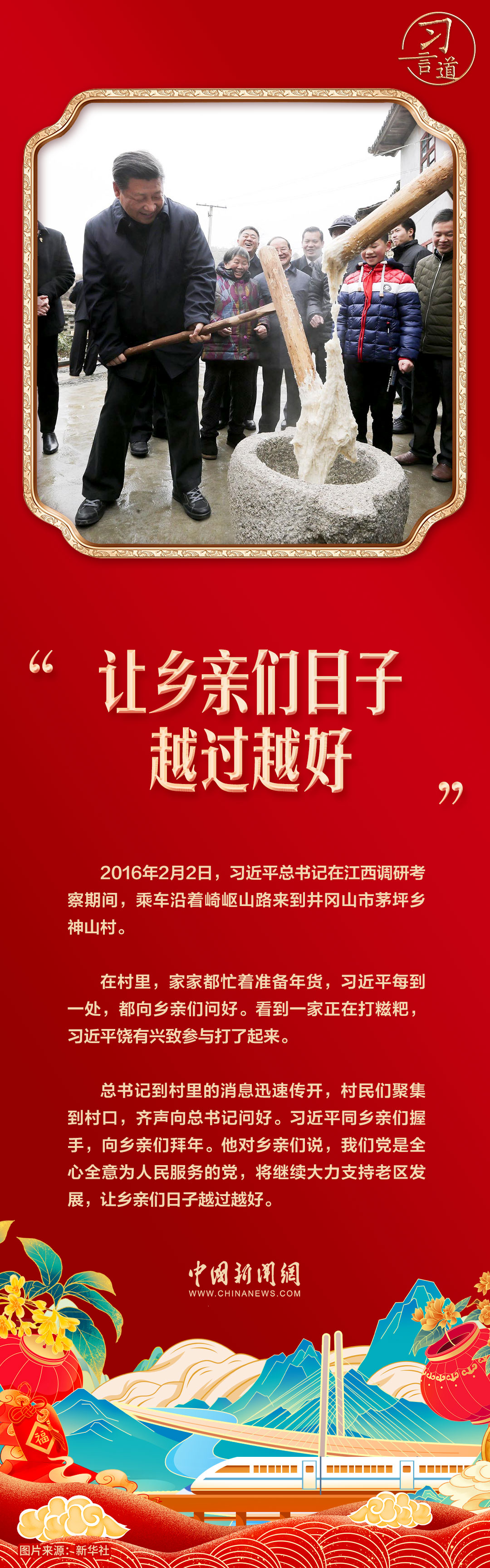 2019年春節(jié)團(tuán)拜會(huì)上,習(xí)近平總書記用“夫孝,德之本也”展現(xiàn)中國(guó)孝老愛親的文化傳統(tǒng),號(hào)召在全社會(huì)大力提倡尊敬老人、關(guān)愛老人、贍養(yǎng)老人。