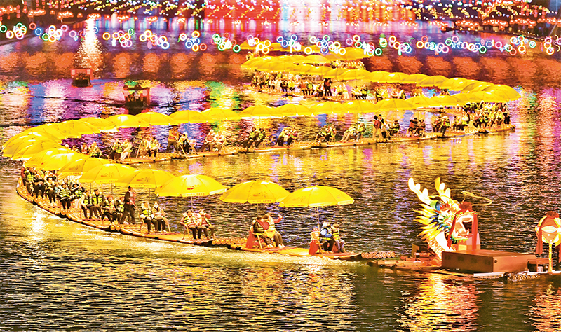 我國堅(jiān)持把恢復(fù)擴(kuò)大消費(fèi)擺在優(yōu)先位置,相繼出臺(tái)一系列促消費(fèi)政策,消費(fèi)市場恢復(fù)向好,消費(fèi)的基礎(chǔ)性作用更加顯著。圖為2024年2月11日,游客在湖北省恩施土家族苗族自治州宣恩縣城貢水河休閑賞夜景。 新華社發(fā) 宋文/攝