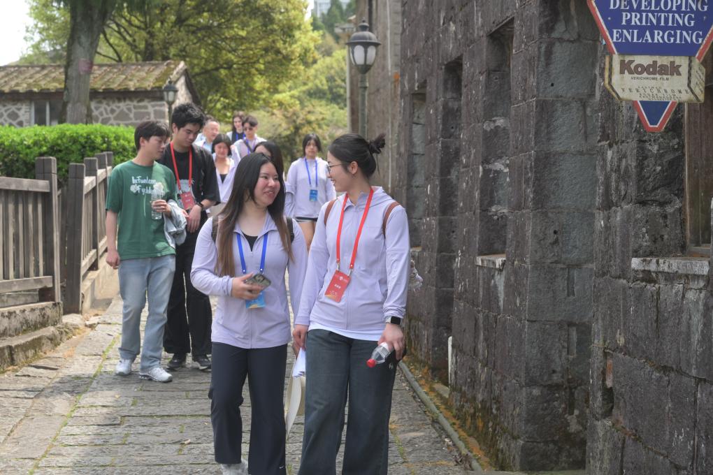 ??3月25日,福州大學(xué)外國語學(xué)院學(xué)生(前右)與美國太平洋大學(xué)學(xué)生(前左)在福州鼓嶺老街漫步交流。當(dāng)日,來自美國俄勒岡大學(xué)、布朗大學(xué)、奧斯威格高級(jí)中學(xué)等校的美國學(xué)生與福州大學(xué)學(xué)生齊聚福州鼓嶺,參加“讀懂中國 相約福建”友好交流活動(dòng)。兩國青少年走訪鼓嶺老街、萬國公益社、柳杉王公園等,感受鼓嶺百年中外交融歷史風(fēng)貌,了解中美交往往事,暢談期待與希望,再續(xù)中美民間友好交往的“鼓嶺故事”。 新華社記者林善傳攝