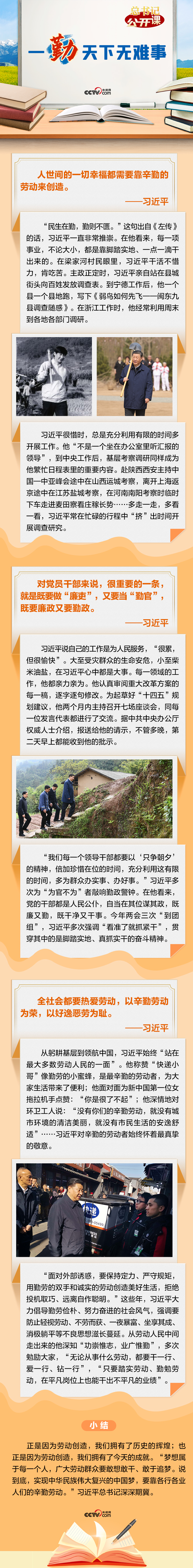 習(xí)近平總書記強(qiáng)調(diào),“一勤天下無難事”,“實現(xiàn)中華民族偉大復(fù)興的中國夢,要靠各行各業(yè)人們的辛勤勞動”?!扒凇笔秦灤┛倳洀恼牡钠焚|(zhì),是對他夙夜在公、勤勉工作最為凝練的概括。