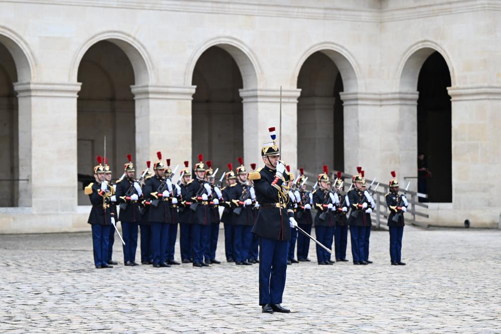 ??當(dāng)天下午,習(xí)近平在巴黎出席馬克龍舉行的隆重盛大歡迎儀式。兩國元首檢閱法蘭西共和國衛(wèi)隊和陸海空三軍儀仗隊,并觀看分列式。