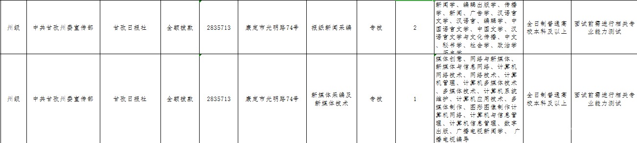 7月1日,甘孜州相關部門發(fā)布公告,甘孜日報社將于2019年通過現(xiàn)場招聘會的形式公開考核招聘3名編制內(nèi)工作人員。
