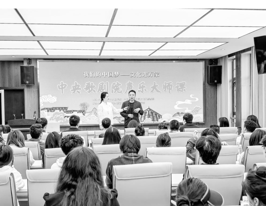 “大家要學會控制氣息、鍛煉氣息,用腹部發(fā)力?!薄霸谘莩獣r要融入感情……”課堂上,當地的音樂愛好者、文藝工作者依次“上臺”大展歌喉。每首歌結束,藝術家們都結合歌唱者的實際情況指出其在演唱過程中存在的問題,并作示范教學。