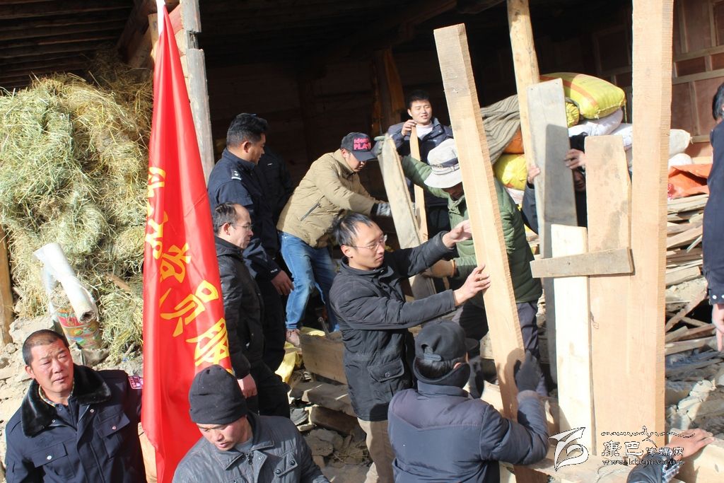 結(jié)對干部幫助道孚縣中古村災(zāi)民搶救財(cái)產(chǎn)。