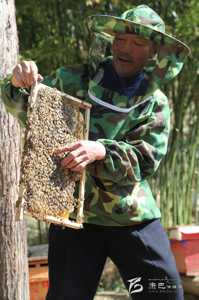 1974年,因為養(yǎng)蜂,高廷明成了割“尾巴”的對象,被連續(xù)批斗了好幾個晚上。但所有這些,都沒有阻擋他養(yǎng)蜂的喜好,反而激發(fā)了他發(fā)展壯大養(yǎng)蜂業(yè)的欲望。“我們這里有桃花、李花、金銀花、油菜花,山上還有成片的五倍子花,五倍子花粉成糖顏色最好,金銀花蜜則有藥用價值。養(yǎng)蜂講究‘三睛兩雨’,最好是晚上下雨,白天出太陽,這種天氣花粉最好,產(chǎn)糖高。由于人手不夠,我都采用小轉(zhuǎn)場放蜂,一般只轉(zhuǎn)場兩、三公里,走遠(yuǎn)了一個人不方便。采蜜時要把準(zhǔn)季節(jié),要不然會出現(xiàn)人與蜜蜂搶蜜的現(xiàn)象,說不定還會被蜜蜂蟄傷。”在院子后面的一片樹林里,高廷明一邊分蜂一邊對記者說。他還告訴記者,雖然自己天天與蜜蜂打交道,這些有靈性的小家伙似乎已經(jīng)習(xí)慣主人的氣味,但自己還是被蜜蜂蟄傷過。每次被蜜蜂蟄傷時,家里的碘酒就派上了用場。
