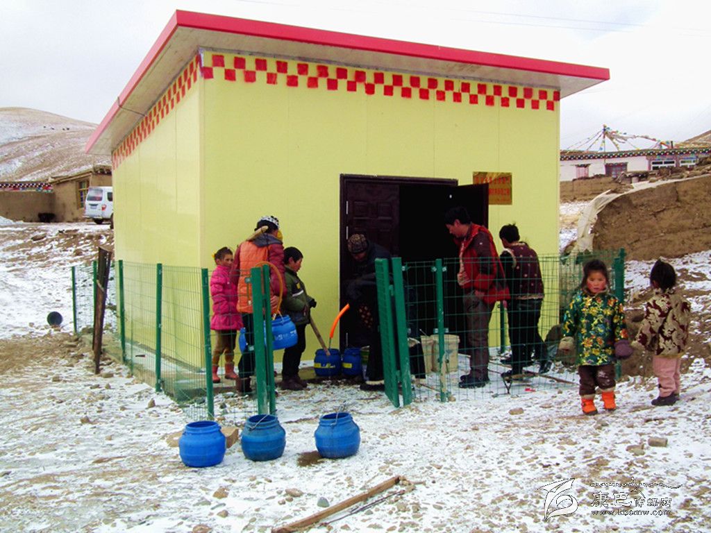經(jīng)過反復設計檢驗,地質工程勘察院最終采用了“泵房、水池雙重保溫、定時供水及時排水”的方案來解決以上問題。在儲水箱和里外出水管上都裹上厚厚的保溫隔熱材料,非凍期24小時按需供水,冰凍期因需要及時排水來確保水箱、水管無殘留水被冰凍而采取早中晚定時供水。通過一個水文年尤其是一個寒冬的考驗,50口示范井成功地為最低零下45度的石渠縣包蟲病區(qū)的居民提供了清潔水源,解決了高原寒冬供水的難題。