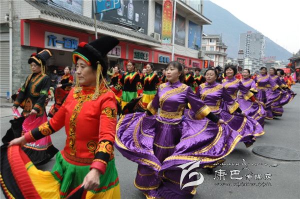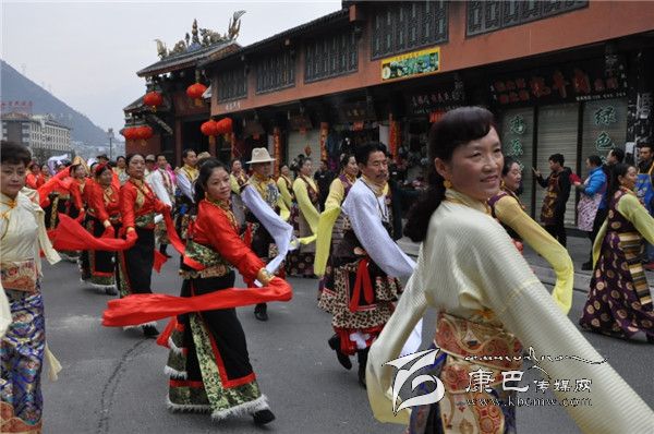 由瀘定縣弦子隊、金甘孜、色達協(xié)會、康定駐瀘協(xié)會組成的藏族方隊;卡迪伲拉、北段社區(qū)、夕陽紅、瀘橋鎮(zhèn)演出隊組成的彝族方隊;企業(yè)協(xié)會和教師協(xié)會組成的扇子方隊;巾幗腰鼓隊和南段社區(qū)瀘園快樂隊組成的鑼鼓方隊等演出人員穿上節(jié)日的盛裝,與全縣人民喜迎新春。