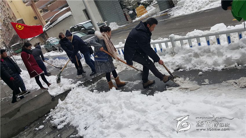 康定市組織干部職工上街除雪。