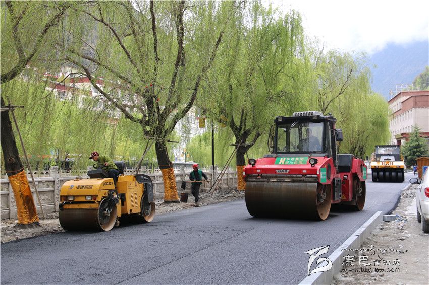 記者在下橋的一個溫馨提示牌上看到這樣的提示:“施工期間請大家注意安全,給你們帶來出行和生活上的不便敬請諒解,感謝各位的支持和理解。”記者沿折多河順流而下,在濱河路上看到,大型瀝青攤鋪機、壓路機一起行動,現(xiàn)場一派熱火朝天的景象。“現(xiàn)在鋪筑的是第一層瀝青,也是最關(guān)鍵的一道工序,必須要保證路面厚度、平整度。”正在負責(zé)監(jiān)督路面質(zhì)量的四川康立監(jiān)理公司員工田雪鋒對記者說。