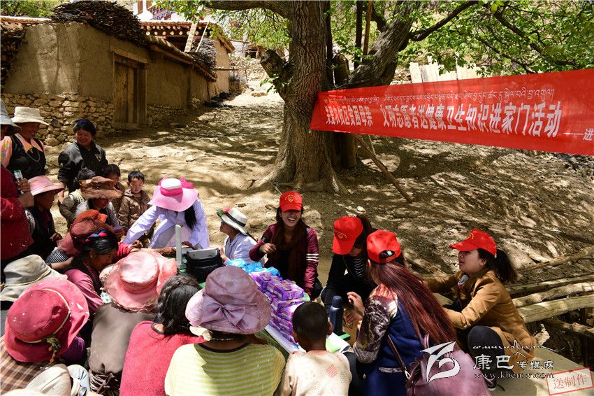 中心絨鄉(xiāng)安里頂村的四郎志瑪剛剛給地里的農(nóng)作物澆水回來,就發(fā)現(xiàn)村里來了一群戴著小紅帽的“不速之客”,他們周圍聚集著提前趕來的鄉(xiāng)親。兩位穿著白大褂的“小紅帽”正在為排著長隊(duì)的鄉(xiāng)親們免費(fèi)體檢,另外還有兩位戴“小紅帽”的女性志愿者召集婦女村民為她們講解健康衛(wèi)生知識(shí),演示女性衛(wèi)生用品的使用方法。
