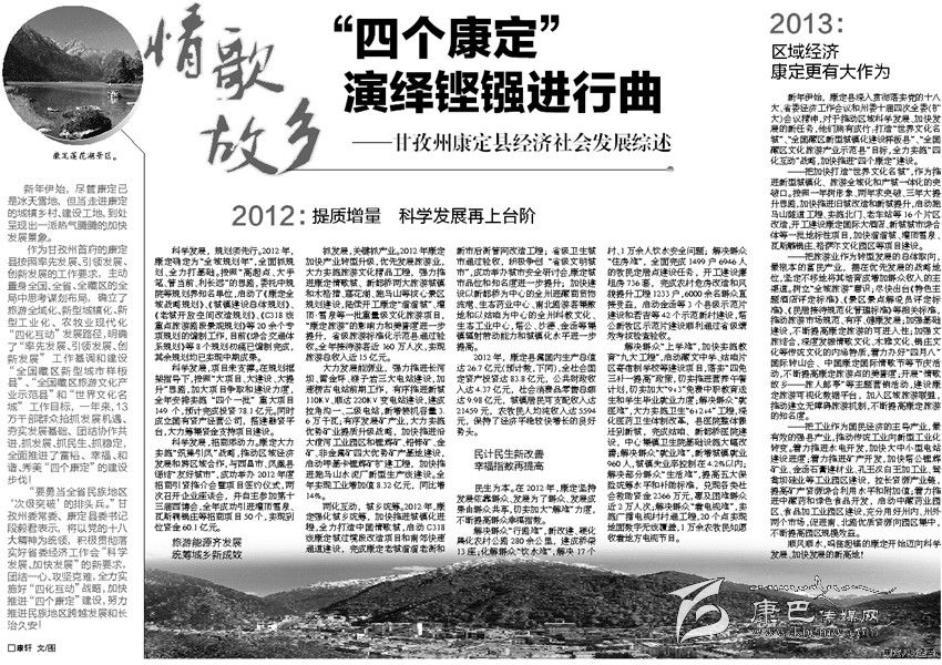 承前啟后,繼往開來。“十三五”美麗畫卷已徐徐掀開,13萬情歌兒女緊緊圍繞“四個全面”戰(zhàn)略布局,始終堅定同步全面建成小康社會這一目標,切實緊扣脫貧奔康和長治久安兩條主線,著力抓好發(fā)展民生穩(wěn)定三件大事,深入實施“六大戰(zhàn)略”,奮勇爭先,引領(lǐng)示范,正健步邁向全力打造全州首位城市和四川藏區(qū)全面小康示范城市,加快“富裕、幸福、和諧、秀美”康定建設的新征程。