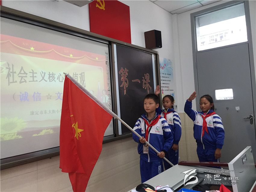 本網(wǎng)訊(胡銀春文/圖)“同學(xué)們,請牢記,我們是光榮的少先隊(duì)員,我們時(shí)刻以一個(gè)少先隊(duì)員的標(biāo)準(zhǔn)嚴(yán)格要求自己,遵守學(xué)校紀(jì)律,認(rèn)真學(xué)習(xí),做一個(gè)德、智、體、美、勞全面發(fā)展的好學(xué)生。”開學(xué)伊始,康定市東大街小學(xué)將培育和踐行社會(huì)主義核心價(jià)值觀教育作為“開學(xué)第一課”,引導(dǎo)全校學(xué)生樹立正確的人生觀、價(jià)值觀,教育學(xué)生用實(shí)際行動(dòng)踐行社會(huì)主義核心價(jià)值觀。