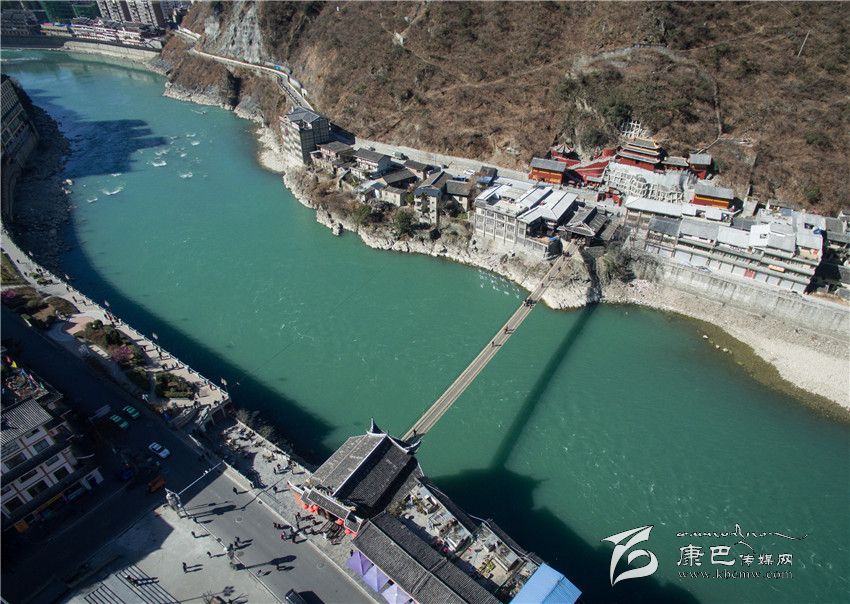 長征之路發(fā)生了翻天覆地的變化,昔日的艱難險(xiǎn)阻正逐漸變成康莊通道。圖為從空中俯看今日瀘定橋。(新華社發(fā))