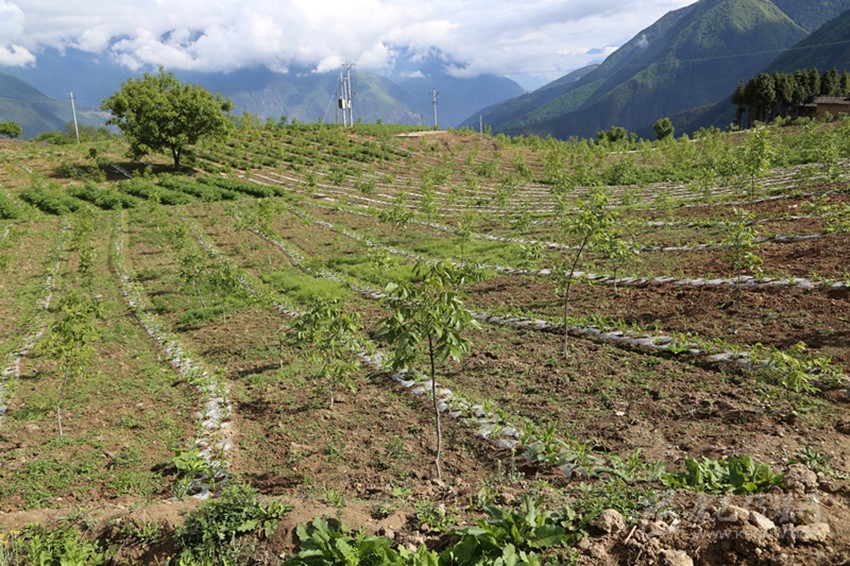 海子村種上連片的核桃樹(shù)苗。