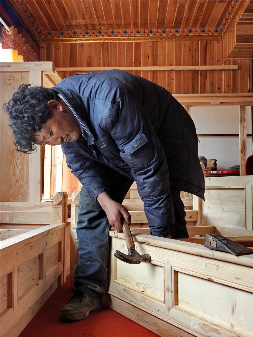 一座頗有些文藝氣質(zhì)的木頭房子,矗立在國道317線旁,這是仁果上村的精準(zhǔn)扶貧項(xiàng)目,也是甘孜縣唯一的手工木工經(jīng)營合作社,村長土登生龍給它起名“木工加工坊”。這幾天,土登生龍每天都在加工坊里忙碌,年底了,木工加工合作社的生意空前的好。