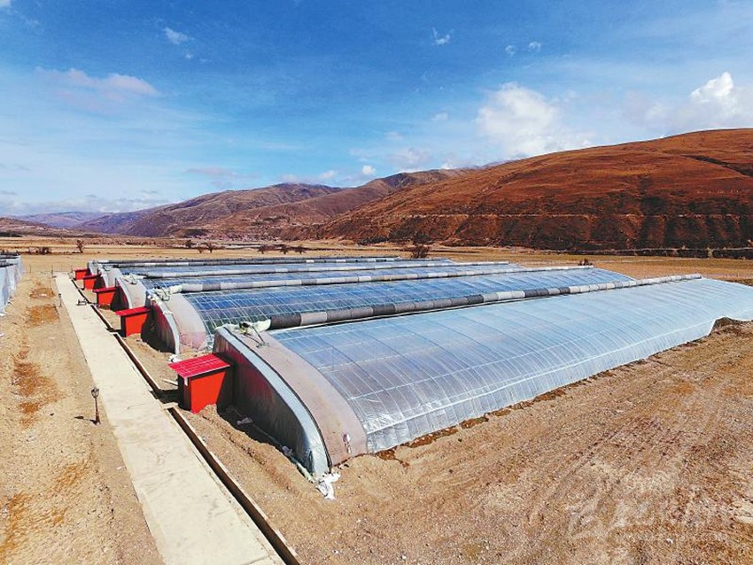 爐霍縣創(chuàng)新飛地扶貧模式,在海拔較低地勢平緩的地方建蔬菜大棚發(fā)展產(chǎn)業(yè),助貧困戶脫貧。陳麗 攝