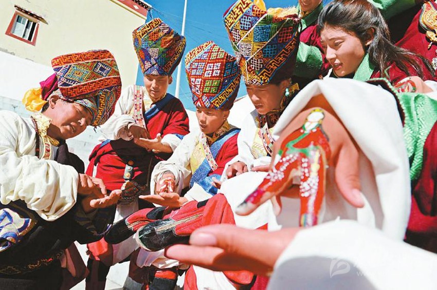來自鄉(xiāng)城縣青麥鄉(xiāng)的車扎姆對手指鍋莊入了迷,“我畢業(yè)后就應(yīng)聘到了白玉縣藝術(shù)團,看到同事們常常用手指在掌心上跳舞,非常好奇,于是也開始學(xué)習(xí),目前已學(xué)了兩年時間?!卑子窨h文化旅游和廣播影視局局長尼瑪擁珍介紹,白玉手指鍋莊從原來少數(shù)年長者會跳已發(fā)展到現(xiàn)在全縣100余人會跳,目前,已成功申報成為縣級非物質(zhì)文化遺產(chǎn),并將逐步申報省級和國家級非物質(zhì)文化遺產(chǎn)。目前白玉縣已啟動了民間歌舞數(shù)據(jù)庫建設(shè)工程,用兩個月時間以視頻、圖片、音頻的方式收錄上百首曲目,還專門編排了“手指鍋莊”音樂達124首,通過以老帶新等方式,讓更多的群眾了解和傳承“手指鍋莊”。?。ɡ钕蛴?攝影報道)