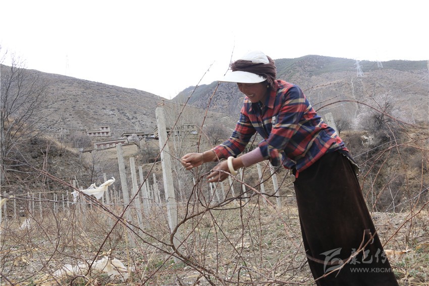 村民正在打理葡萄園。