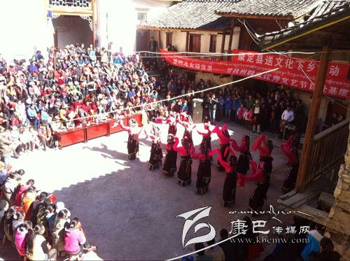 12月2日,康定縣捧塔鄉(xiāng)捧塔寺內(nèi)人頭攢動,熱鬧非凡,由康定縣旅游文化局組織的送文化下鄉(xiāng)惠民演出吸引了周邊的眾多群眾前來觀看。 演出在州歌舞團演員歡快的舞蹈中拉開帷幕。一曲曲耳熟能詳?shù)母枨?、一支支熱情洋溢的舞蹈為農(nóng)牧民群眾送上了一份文化厚禮。演出結束,意猶未盡的捧塔村民說:“今天一大早我就等在這里,農(nóng)村的文化生活簡單枯燥,好久沒有看到這么精彩豐富的文藝節(jié)目了,它不但豐富了我們的文化生活,還宣傳了黨的惠民政策,這樣的方式比傳統(tǒng)的開會宣傳更能讓大家知曉、熟記各項富農(nóng)惠民政策,也更受大家歡迎,希望這樣的活動以后能多多舉辦。”圖為演出現(xiàn)場。(李瑤 攝影報道)