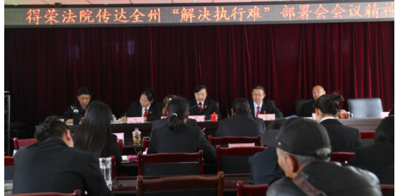 孫菊花原文傳達了州法院吳良軍院長、羅云局長等領(lǐng)導(dǎo)在部署會議上的講話內(nèi)容,結(jié)合本院情況分別從準(zhǔn)確把握各項短板和不足、抓好執(zhí)法辦案要務(wù)、實現(xiàn)案件分類管理、分段辦理等幾方面向全院干警解讀了會議精神。孫院長對我院下一步的執(zhí)行攻堅工作提出四點要求:一是全院干警要統(tǒng)一思想,通力協(xié)作,舉全院之力不折不扣完成執(zhí)行工作任務(wù);二是各部門要加強協(xié)調(diào)配合、步調(diào)一致,樹立全院一盤棋的思想,在規(guī)范常規(guī)動作的基礎(chǔ)上繼續(xù)加大執(zhí)行強制措施的威懾力;三是執(zhí)行局必須明確目標(biāo),緊盯兩個90%工作任務(wù),各辦案小組根據(jù)案件具體情況逐案制定方案個個擊破;四是全力爭取縣委政府的支持和社會各界的理解配合,統(tǒng)一部署,形成多部門、多領(lǐng)域、多手段聯(lián)動執(zhí)行的強大合力。