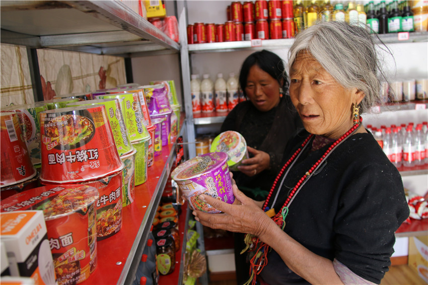 由于超市商品質(zhì)量好價格合理,不僅洛蝦村村民購買,附近阿拉龍村的村民都到這里購物。超市開張以來月,第一批貨已銷售了30%。當值“掌柜”、貧困村民折瑪拉措說:“在超市賣東西,過著‘老板癮’,每天還有十多塊錢的收入,安逸!”’