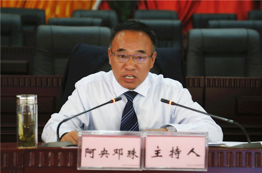縣委副書記、縣長(zhǎng)阿央鄧珠主持開班儀式。