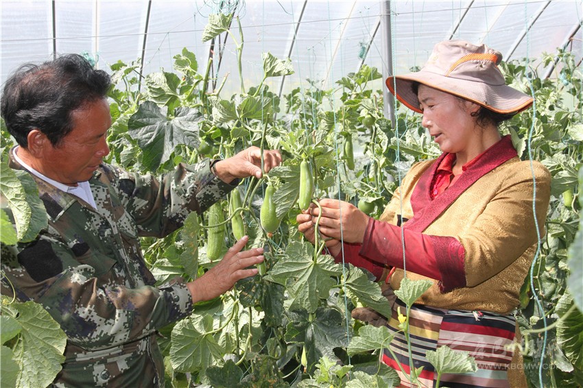去年以來,理塘縣通過引進(jìn)瑪吉阿米現(xiàn)代農(nóng)業(yè)有限公司、康藏陽光農(nóng)牧業(yè)科技開發(fā)有限公司,建立“支部+公司+合作社+農(nóng)戶”的管理模式,讓建檔立卡貧困戶直接受益,100余人實現(xiàn)在家門口打工、學(xué)技術(shù)。圖為8月6日,理塘縣甲洼鎮(zhèn)俄曲村貧困藏族農(nóng)戶一邊打工掙錢,一邊跟公司聘請的技術(shù)員學(xué)習(xí)蔬菜種植技術(shù)。